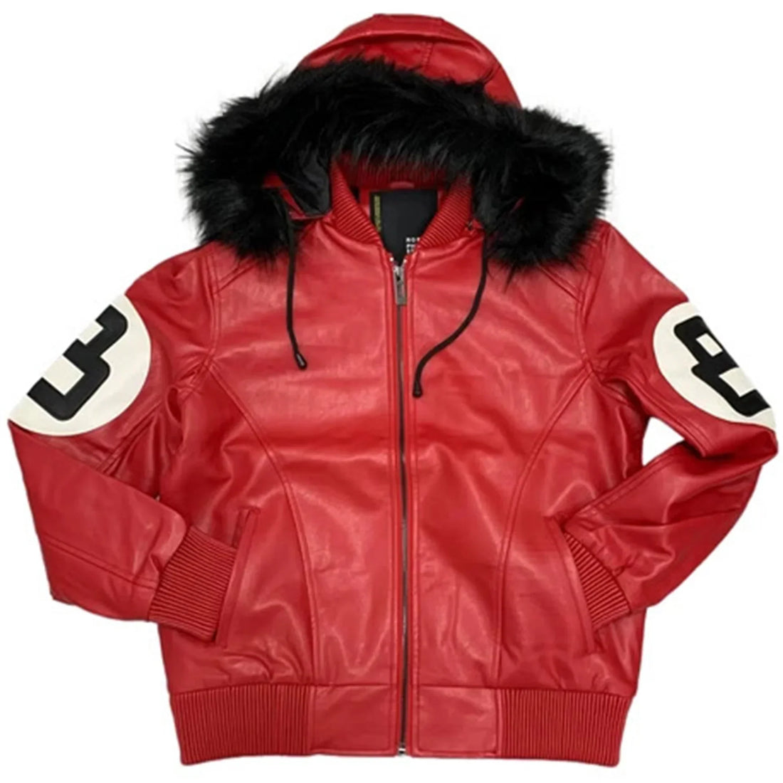 8 Ball Pool Logo Fur Hooded Black & White Men's Jacket