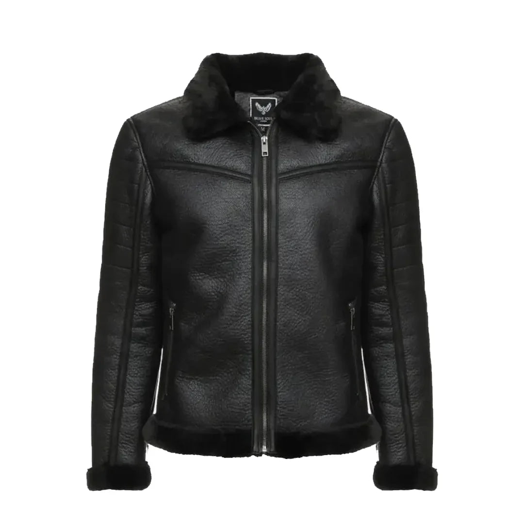 Aurora Men's Black Sheepskin Leather Faux Shearling Jacket